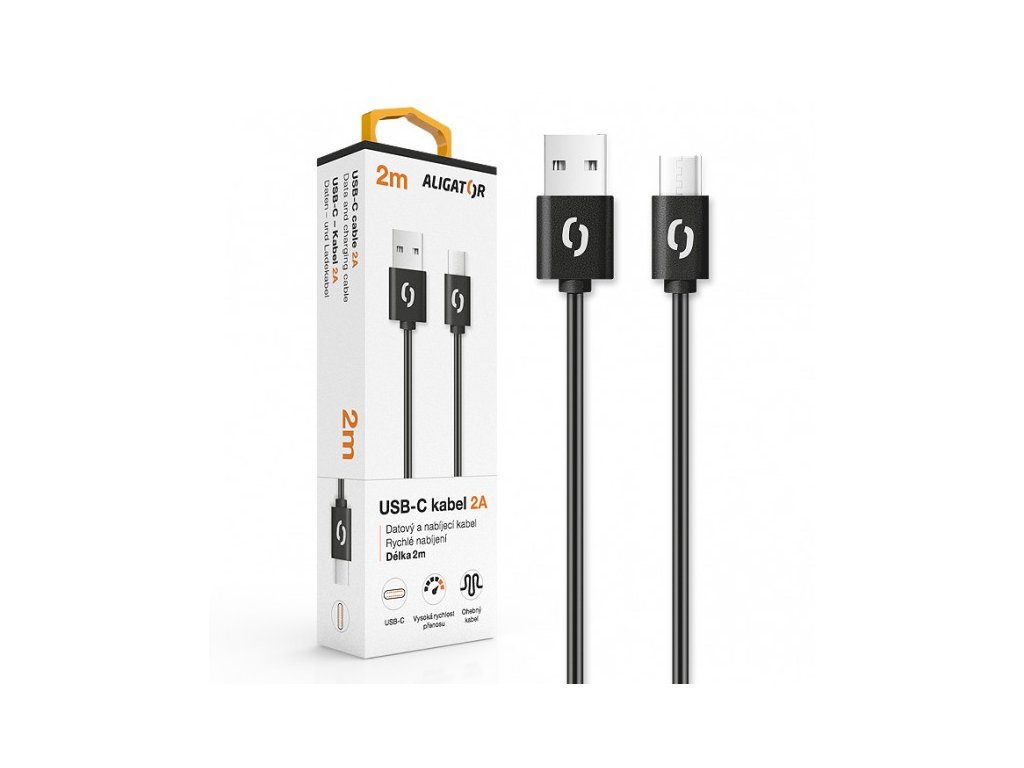 Datový a nabíjecí kabel ALIGATOR 2A USB-C 2m, černý