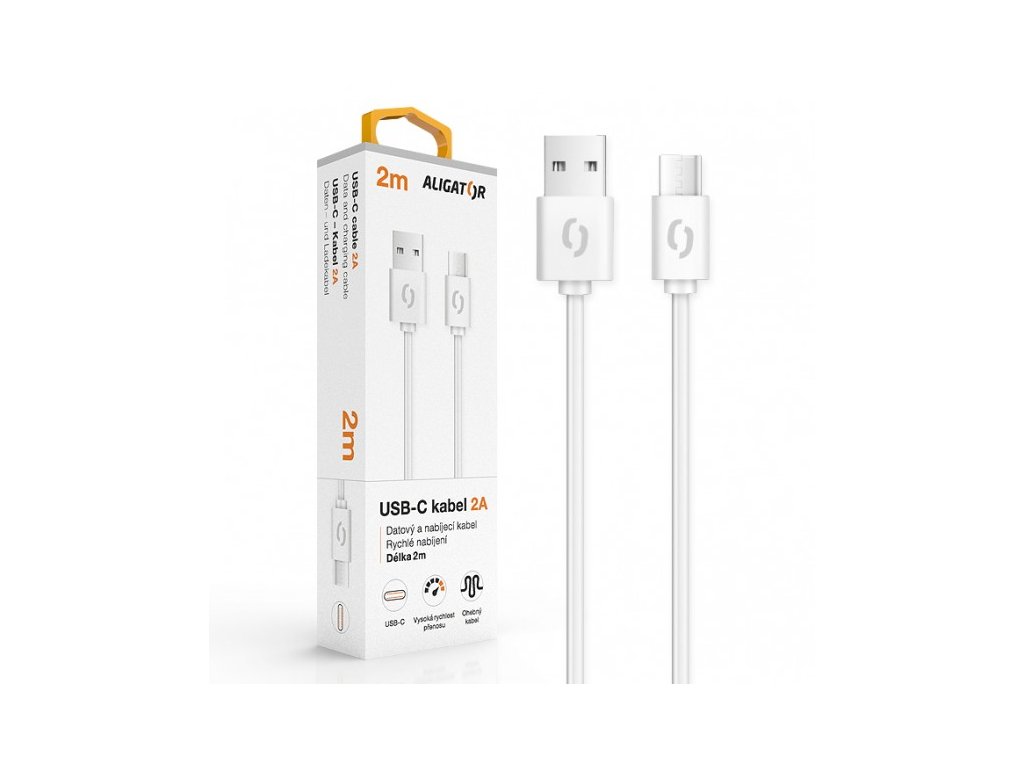 Datový kabel ALIGATOR 2A USB-C 2m, bílý