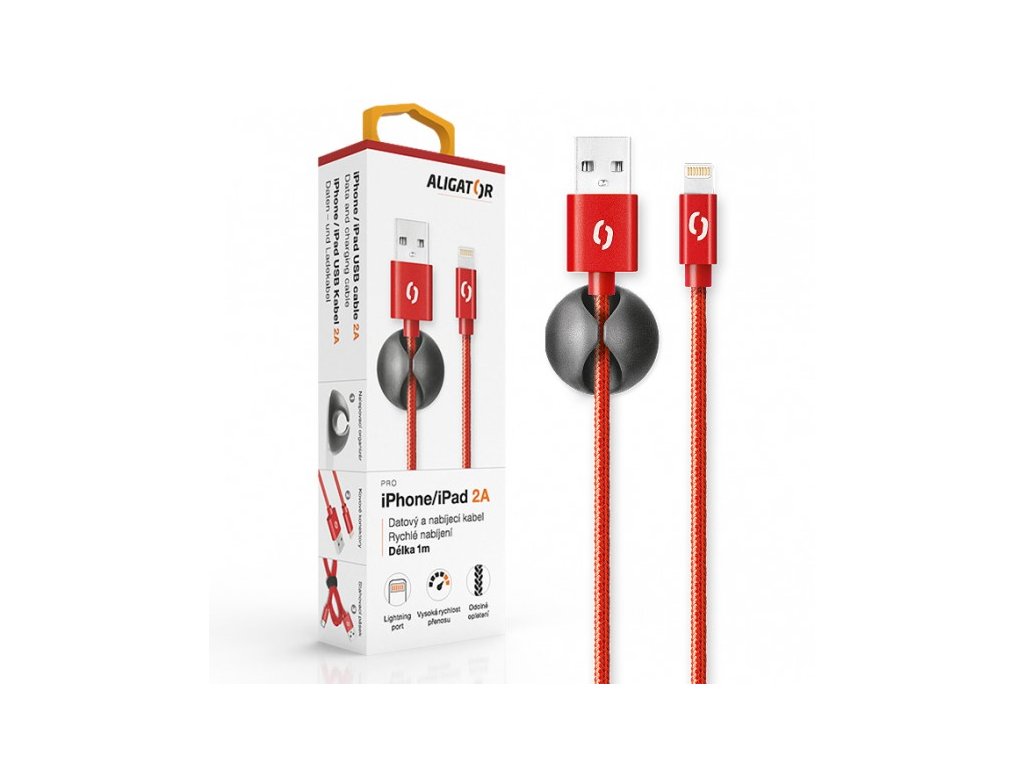 Datový kabel ALIGATOR PREMIUM 2A, Lightning červený