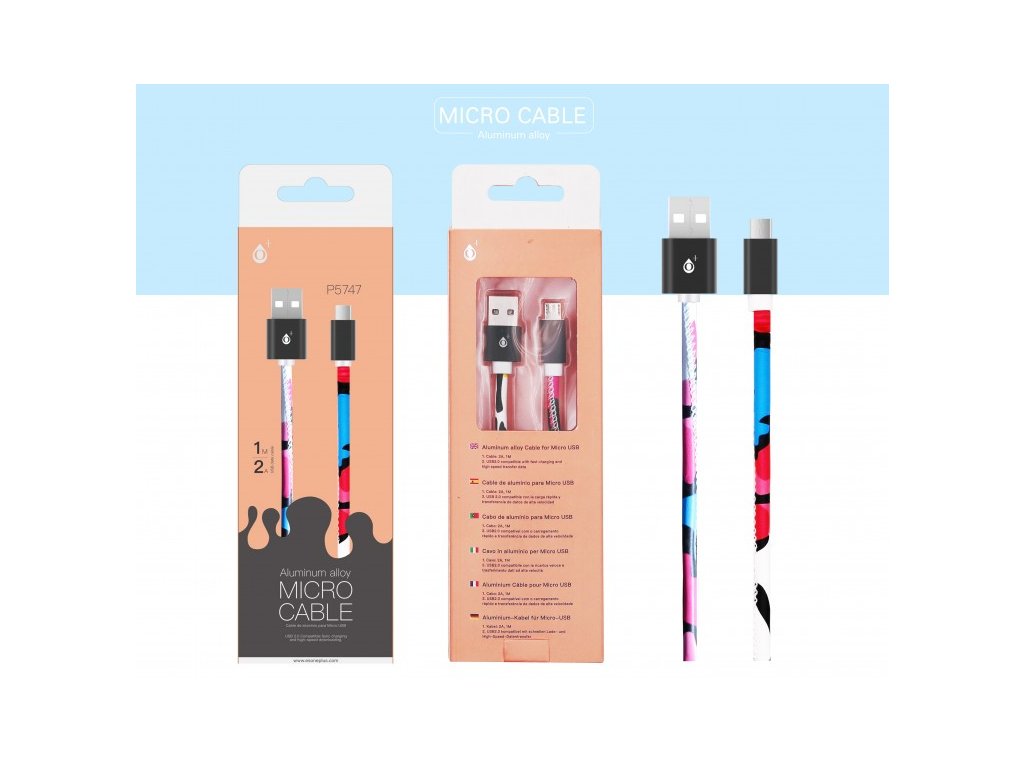 Datový kabel PLUS P5747 Micro USB ,2A, 1M, vzor růžový