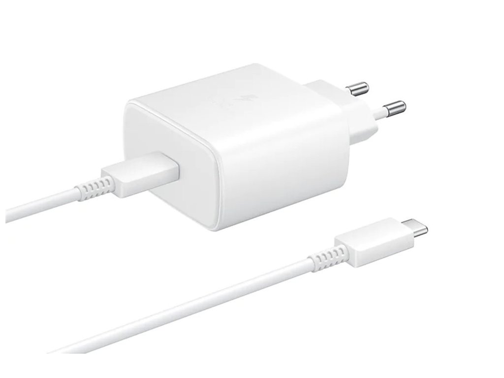 Samsung originální nabíječka do zásuvky s USB-C kabelem a podporou rychlonabíjení 45 W.