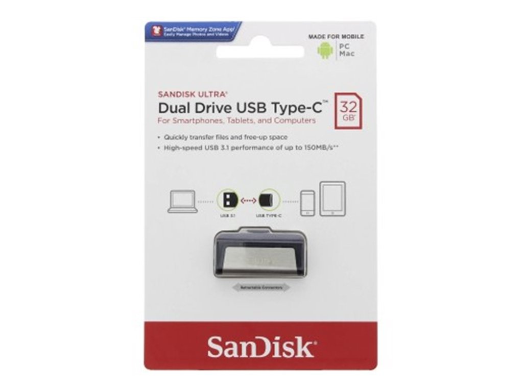 USB klíč pro zařízení se slotem typu C- jednoduchý přenos souborů mezi chytrými telefony, tablety a PC- uvolní prostor na vašem Android zařízení s konektorem typu C- kombinace výsuvných konektorů USB typu C a tradičního USB- High-speed USB 3.1 rychlost až do 150 MB/s- SanDisk Memory Zone aplikace pro Android, dostupná na Google Play ™ vám umožňuje snadno spravovat a zálohovat vaše soubory na smartphonu nebo tabletu