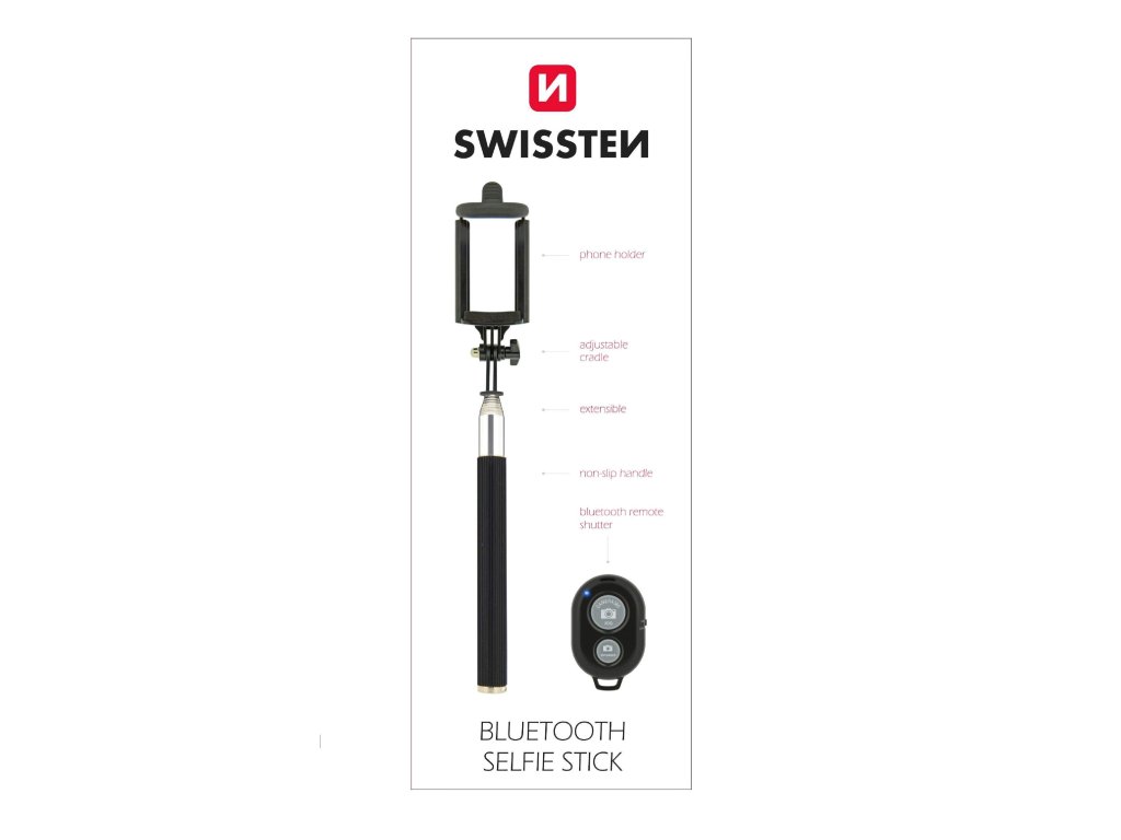 Solid and 97 cm long selfie stick. The SWISSTEN selfie stick also works with Windows 10 phones after download of the app Lumia Selfie from the Microsoft Store. Activate Bluetooth on the Windows 10 phone and it will find the remote switch of the selfie stick named AB Shutter3.